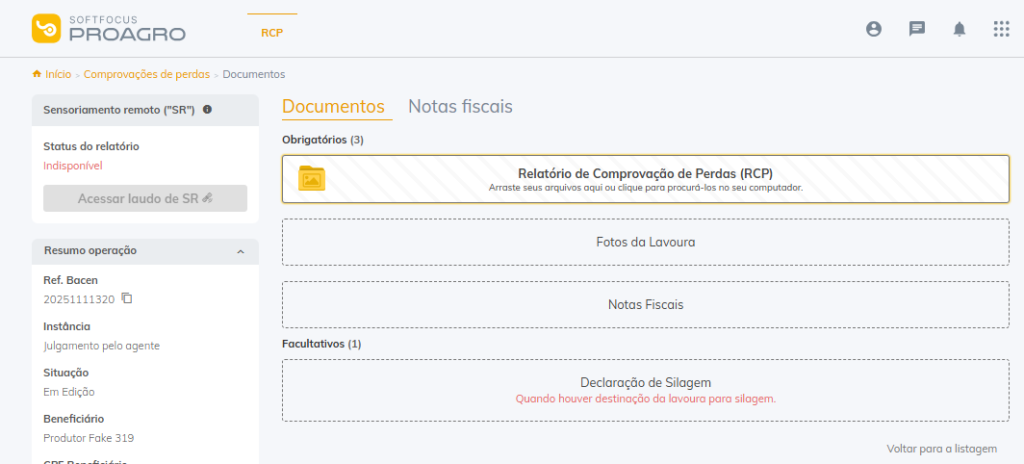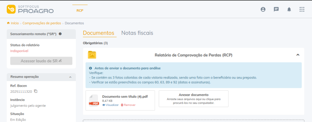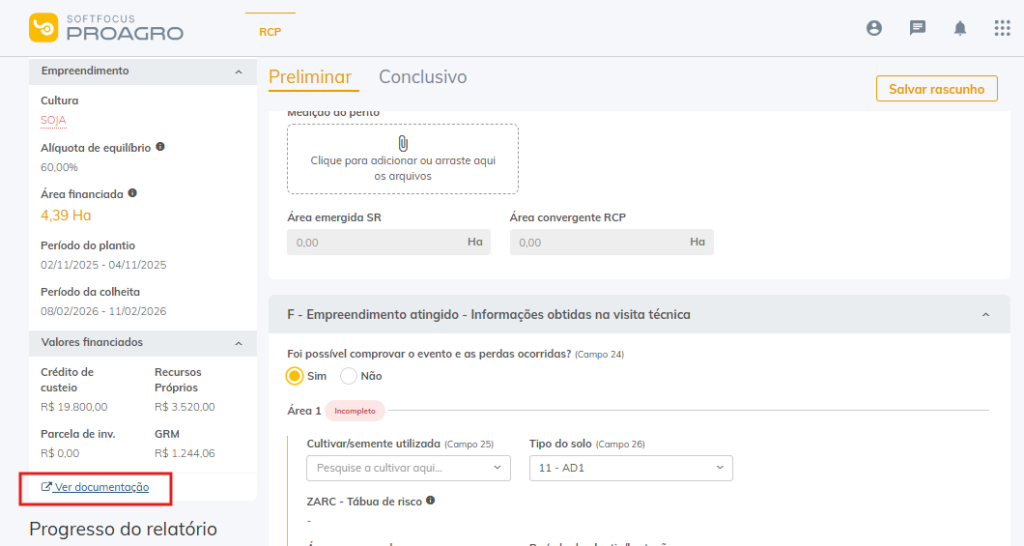 Outra forma de acessar o checklist de documentos é por meio do link “Ver documentação”, disponível na tela de edição do RCP.