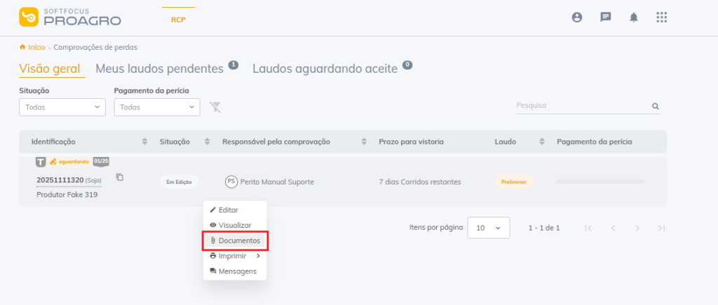 Para acessá-los, basta clicar sobre a operação na tela de listagem de RCPs e selecionar a opção Documentos.