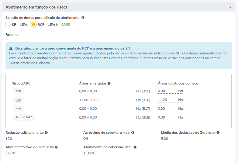Nesta etapa, são apresentados os dados utilizados para o cálculo do abatimento ou acréscimo de cobertura em função dos riscos da operação. O analista poderá escolher a base de informações que será utilizada no cálculo, podendo optar entre: